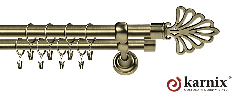 Karnisze Rzymskie z kolekcji firmy KARNIX to  propozycja dla wielbicieli tradycyjnego wzornictwa. Wprowadzając do sprzedaży tę linię karniszy, postanowiliśmy połączyć przeszłość z przyszłością, aby wykreować ponadczasową kolekcję. Uniwersalność i pomysłowość  to słowa klucze, które w skrócie charakteryzują kolekcję karniszy rzymskich. Elementy karniszy w całości wykonane są z metalu pokrytego powłoką galwaniczną oraz warstwą lakieru, która zwiększa odporność na ścieranie. Uwaga. Inox oraz antracyt dostępne są przy średnicach 19 i 25mm.