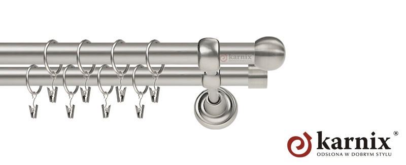 Karnisze Rzymskie z kolekcji firmy KARNIX to  propozycja dla wielbicieli tradycyjnego wzornictwa. Wprowadzając do sprzedaży tę linię karniszy, postanowiliśmy połączyć przeszłość z przyszłością, aby wykreować ponadczasową kolekcję. Uniwersalność i pomysłowość  to słowa klucze, które w skrócie charakteryzują kolekcję karniszy rzymskich. Elementy karniszy w całości wykonane są z metalu pokrytego powłoką galwaniczną oraz warstwą lakieru, która zwiększa odporność na ścieranie. Uwaga. Inox oraz antracyt dostępne są przy średnicach 19 i 25mm.