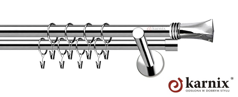 Karnisze Nowoczesne, z nowej kolekcji firmy KARNIX to  propozycja skierowana do wielbicieli nowoczesnego wzornictwa. Wprowadzając do sprzedaży tę nową, designerską linię nowoczesnych karniszy, postanowiliśmy połączyć przeszłość z przyszłością, aby wykreować ponadczasową kolekcję. Jakość, pomysłowość i nowoczesność  to słowa klucze, które w skrócie charakteryzują kolekcję karniszy nowoczesnych na wymiar NEO. Elementy karniszy nowoczesnych NEO w całości wykonane są z metalu pokrytego powłoką galwaniczną oraz warstwą lakieru, która zwiększa odporność na ścieranie.