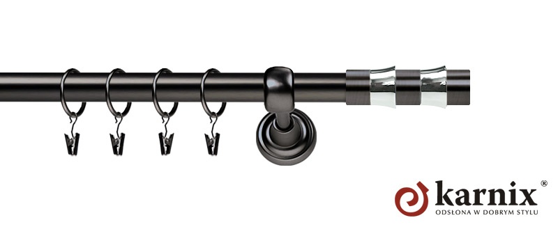 Karnisze Metalowe Rzymskie z kolekcji firmy KARNIX to  propozycja dla wielbicieli tradycyjnego wzornictwa. Wprowadzając do sprzedaży tę linię karniszy metalowych, postanowiliśmy połączyć przeszłość z przyszłością, aby wykreować ponadczasową kolekcję. Uniwersalność i pomysłowość  to słowa klucze, które w skrócie charakteryzują kolekcję karniszy metalowych rzymskich. Elementy karniszy w całości wykonane są z metalu pokrytego powłoką galwaniczną oraz warstwą lakieru, która zwiększa odporność na ścieranie. Uwaga. Inox oraz antracyt dostępne są przy średnicach 19 i 25mm.
