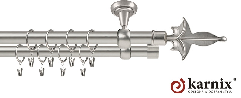 Karnisze Metalowe Rzymskie z kolekcji firmy KARNIX to  propozycja dla wielbicieli tradycyjnego wzornictwa. Wprowadzając do sprzedaży tę linię karniszy, postanowiliśmy połączyć przeszłość z przyszłością, aby wykreować ponadczasową kolekcję. Uniwersalność i pomysłowość  to słowa klucze, które w skrócie charakteryzują kolekcję karniszy metalowych rzymskich. Elementy karniszy w całości wykonane są z metalu pokrytego powłoką galwaniczną oraz warstwą lakieru, która zwiększa odporność na ścieranie. Uwaga. Inox oraz antracyt dostępne są przy średnicach 19 i 25mm.