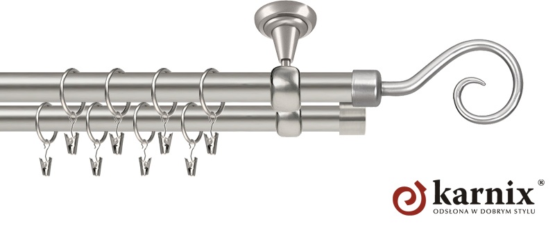 Karnisze Metalowe Rzymskie z kolekcji firmy KARNIX to  propozycja dla wielbicieli tradycyjnego wzornictwa. Wprowadzając do sprzedaży tę linię karniszy, postanowiliśmy połączyć przeszłość z przyszłością, aby wykreować ponadczasową kolekcję. Uniwersalność i pomysłowość  to słowa klucze, które w skrócie charakteryzują kolekcję karniszy metalowych rzymskich. Elementy karniszy w całości wykonane są z metalu pokrytego powłoką galwaniczną oraz warstwą lakieru, która zwiększa odporność na ścieranie. Uwaga. Inox oraz antracyt dostępne są przy średnicach 19 i 25mm.