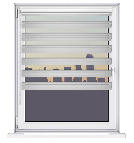 Tkanina ekskluzywna Dzień Noc EXCLUSIVE to elegancka tkanina, której pasy posiadają bardzo modny, subtelny wzór linearny. Podczas zwijania rolety pasy efektownie nachodzą na siebie dzięki czemu pozwalają precyzyjnie zaciemnić pomieszczenie.