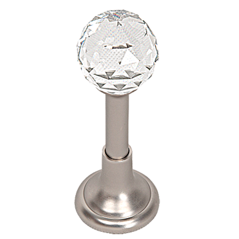 Rozeta BELUNA CRYSTAL do upinania dekoracji okiennych w kolorze chrom mat (satyna nikiel) wykonana z metalu pokrytego powłoką galwaniczną oraz warstwą lakieru, która zwiększa odporność na ścieranie. Niekonwencjonalny szklany detal urzeka wspaniałą refrakcją koloru i błysków światła, co w połączeniu z metalowymi elementami daje ciekawy stylistycznie efekt: nowoczesny, a jednocześnie stylowy. Rozeta ta nadaje karniszom niepowtarzalny charakter idealnie wpisujący się w ekskluzywny wystrój wnętrza. W komplecie kołek rozporowy.