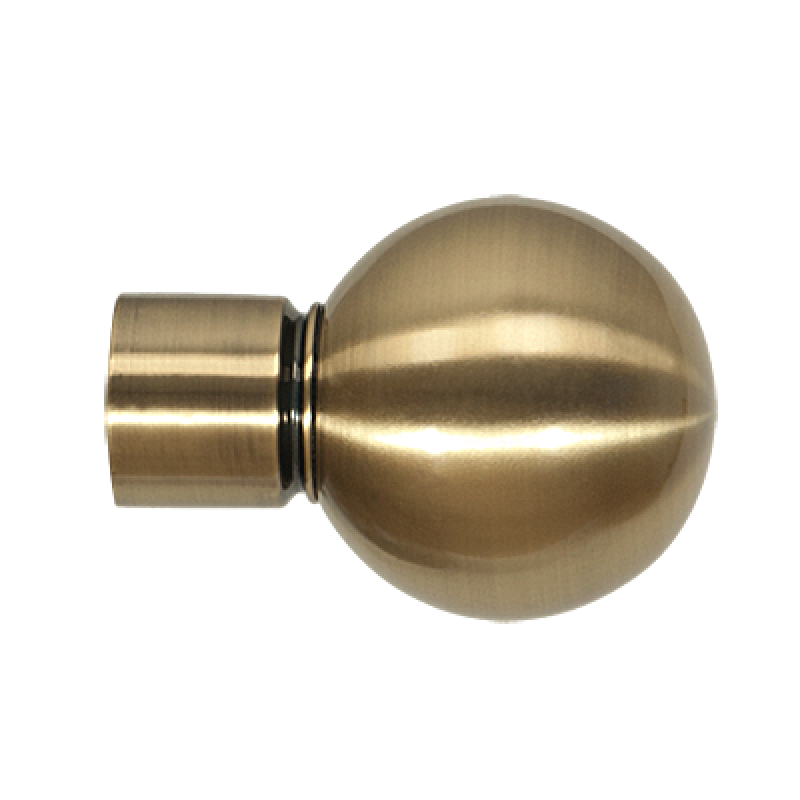 Zakończenia KULA w kolorze antyk mosiądz (stare złoto) do karniszy o średnicy rur 25mm wykonane z metalu pokrytego powłoką galwaniczną oraz warstwą lakieru, która zwiększa odporność na ścieranie. Komplet zakończeń Kula przedłuża karnisz łącznie o 14 cm.