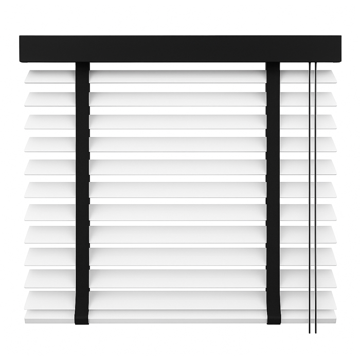 Białe żaluzje drewniane z czarną pasmanterią doskonale sprawdzą się w salonie, sypialni czy biurze, nadając wnętrzu stylowy, nowoczesny wygląd i zapewniając pełną kontrolę nad ilością światła. To idealny wybór do nowoczesnych, skandynawskich lub loftowych aranżacji, gdzie liczy się prostota formy i stylowy detal